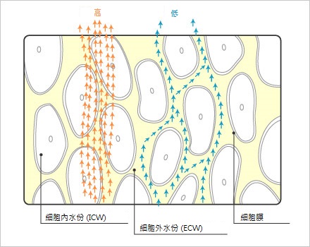 電流根據頻率數透過細胞膜的程度有所不同,初期的BIA方式由於只使用了50kHz單一頻率,從而無法正確區分細胞內和細胞外水份進行正確測量。